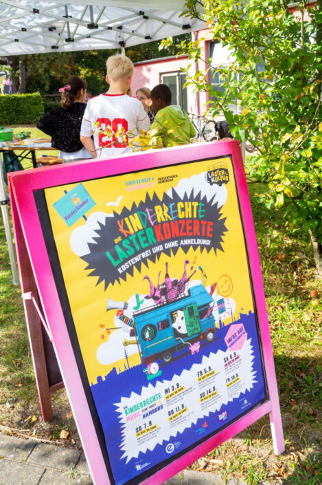 Bei der Kinderrechte-Lasterkonzerte-Tour haben wir sieben Stopps an sieben unterschiedlichen Orten in Hamburg eingelegt und diesmal ein buntes Musik- und Kunstprogramm rund um das Thema „Kinderrechte“ mitgebracht.
