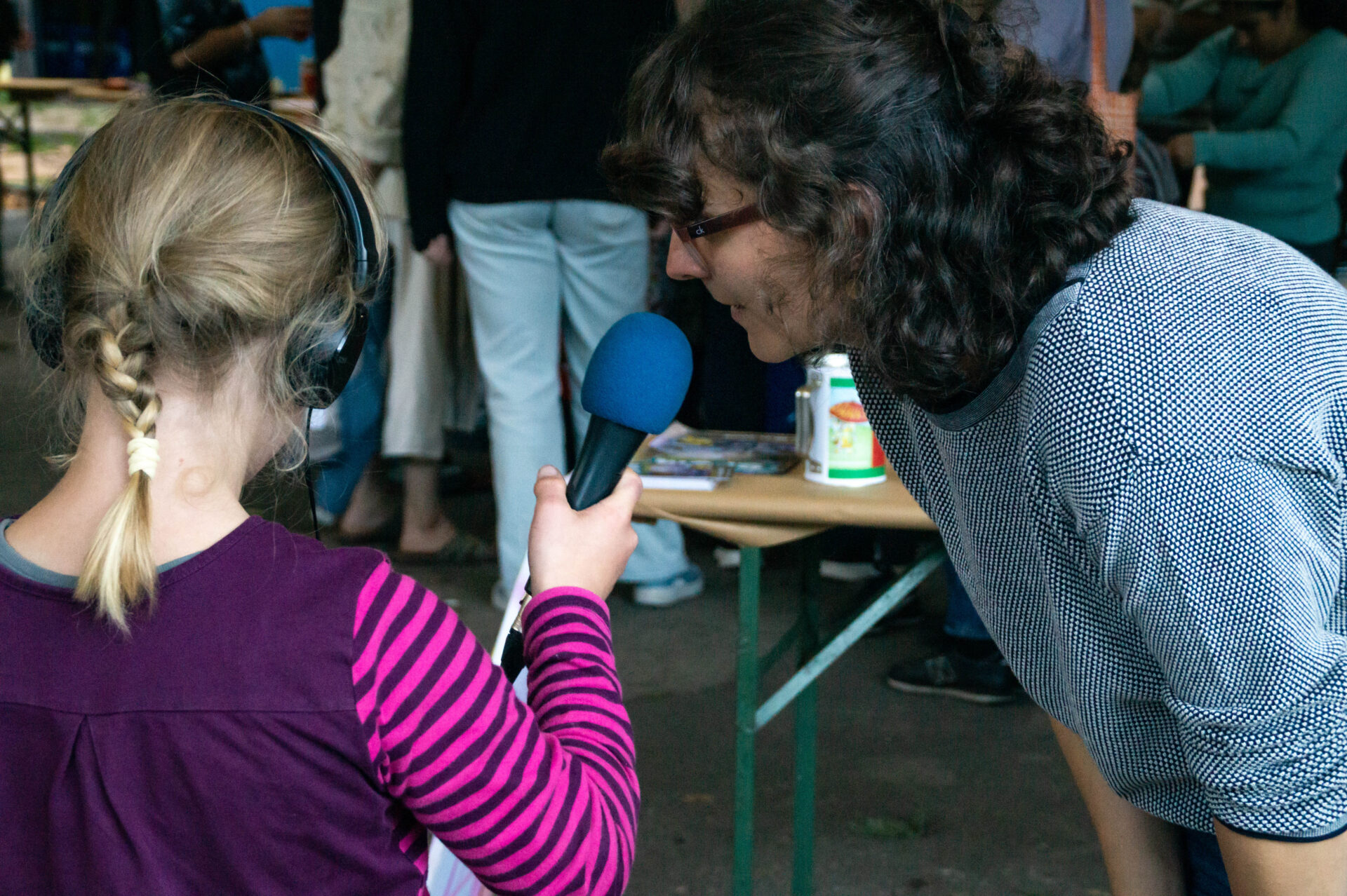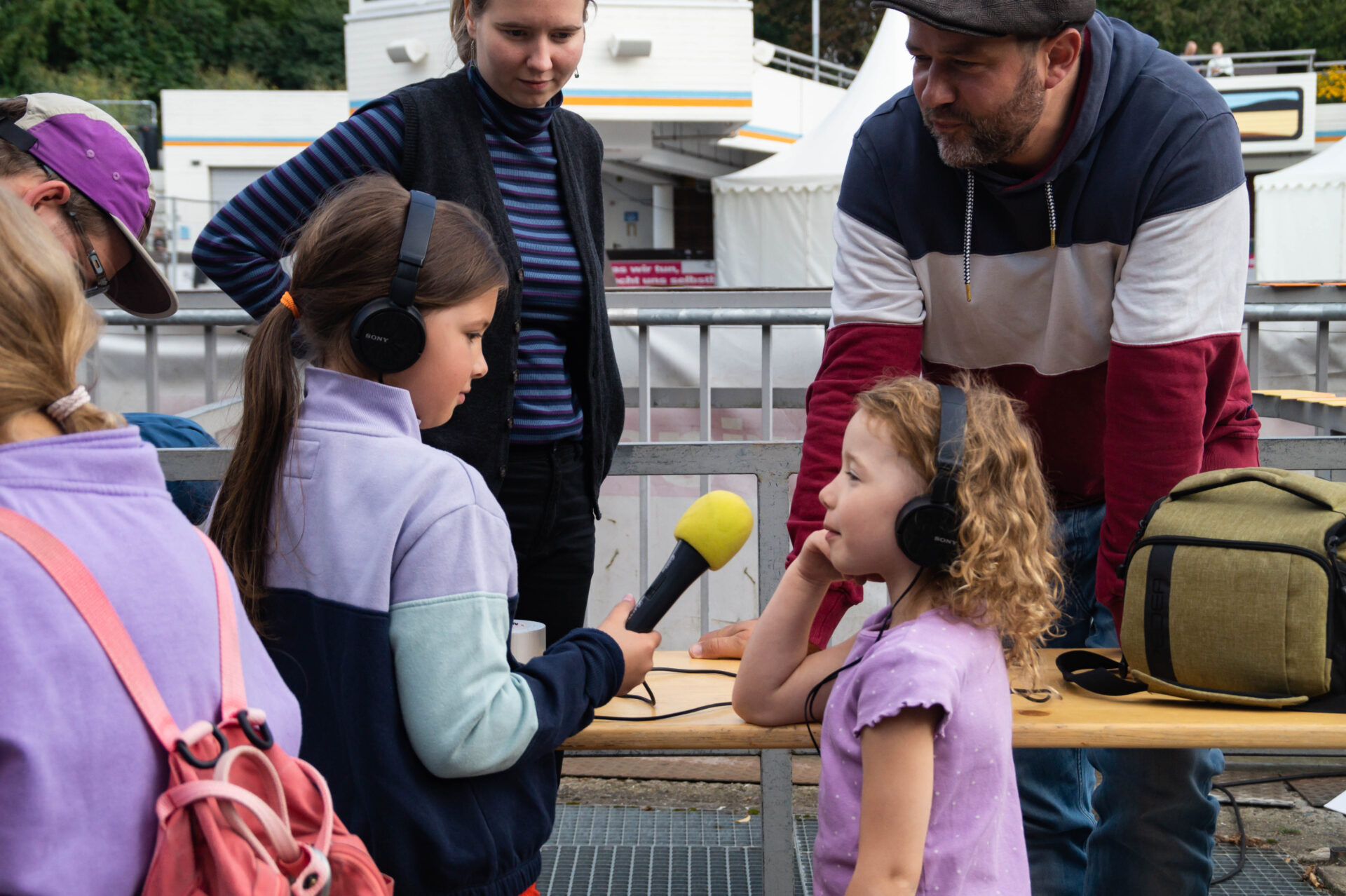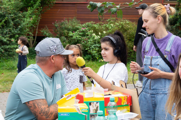 Ausgestattet mit Mikrofon und Aufnahmegerät befragten sie Besucher*innen zu den Kinderrechten und Themen, die ihnen wichtig sind, ganz im Sinne des Rechts auf Information und Ausdruck.