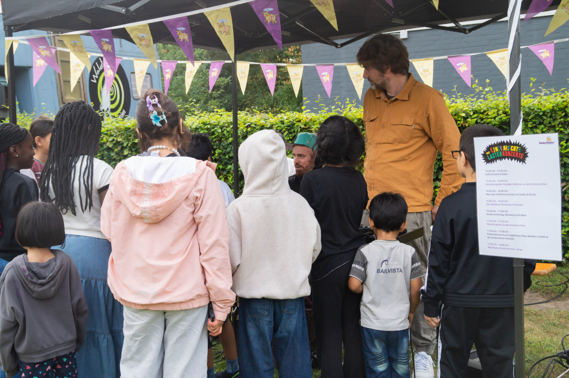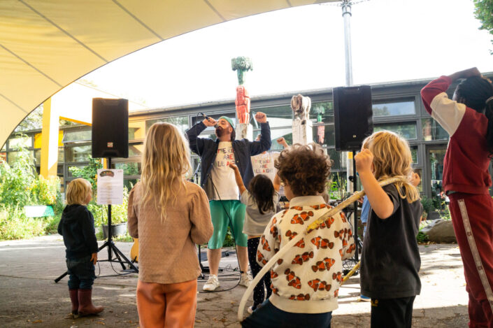 Wir bedanken uns herzlich bei allen, die vorbeigekommen sind, mit uns gefeiert, Musik und Kunst gemacht, gelernt und gemeinsam gezeigt haben, dass Kinderrechte nicht nur ein Konstrukt auf dem Papier sind, sondern gelebt werden können.