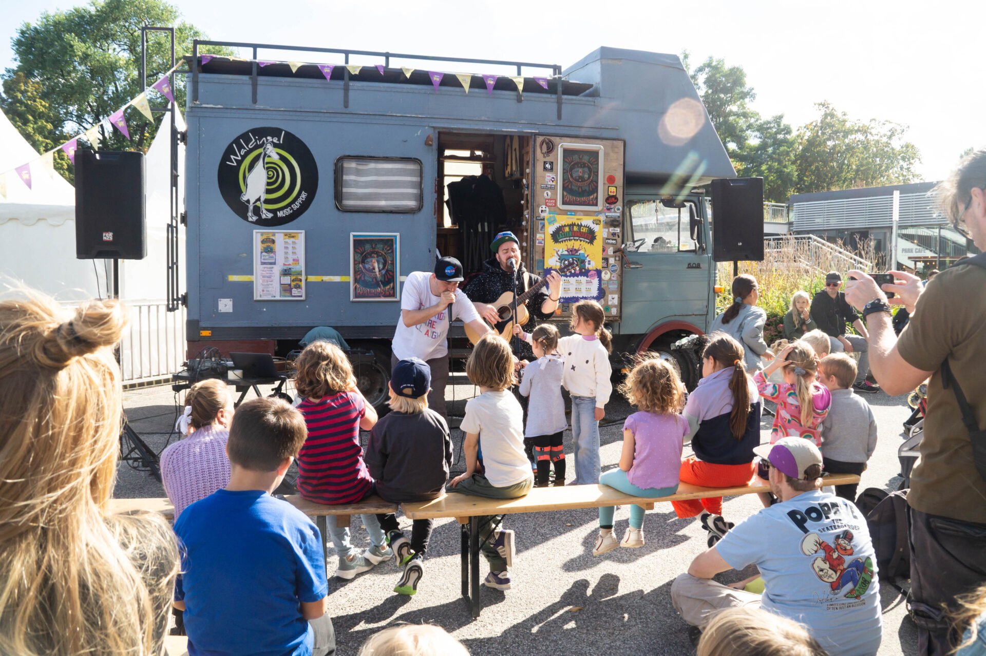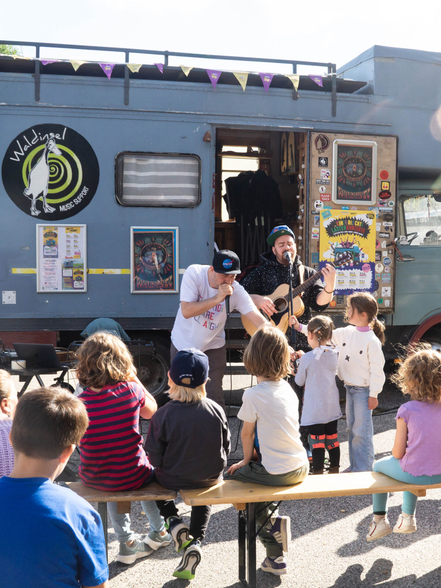 Auch wir von der Lasterkultur haben bereits (Musik-)Projekte für Kinder verwirklicht – wie etwa die Kinder-Mitmachlaster-Tour im Rahmen des Hamburger Kultursommers. Hier konnten Kinder selbst aktiv werden und Musik machen. Besonders war daran, dass wir mit dem Laster an sieben verschiedenen Orten in Hamburg Station gemacht haben, damit nicht nur viele, sondern auch ganz unterschiedliche Kinder die Chance hatten, dabei zu sein.